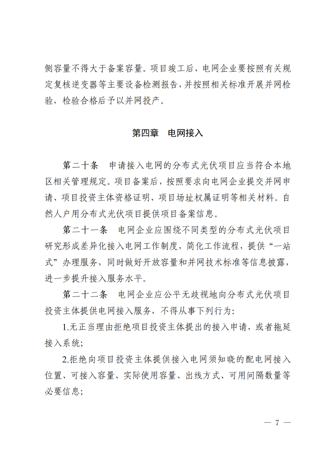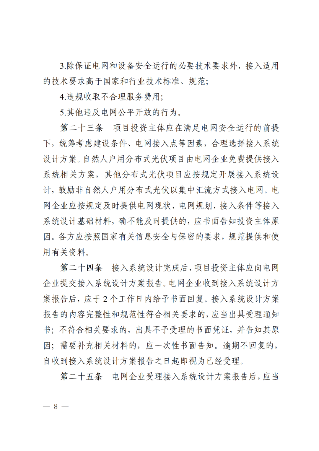 自然人户用分布式光伏项目由电网企业免费提供接入系统相关方案,其他分布式光伏项目应按规定开展接入系统设计,鼓励非自然人户用分布式光伏以集中汇流方式接入电网。