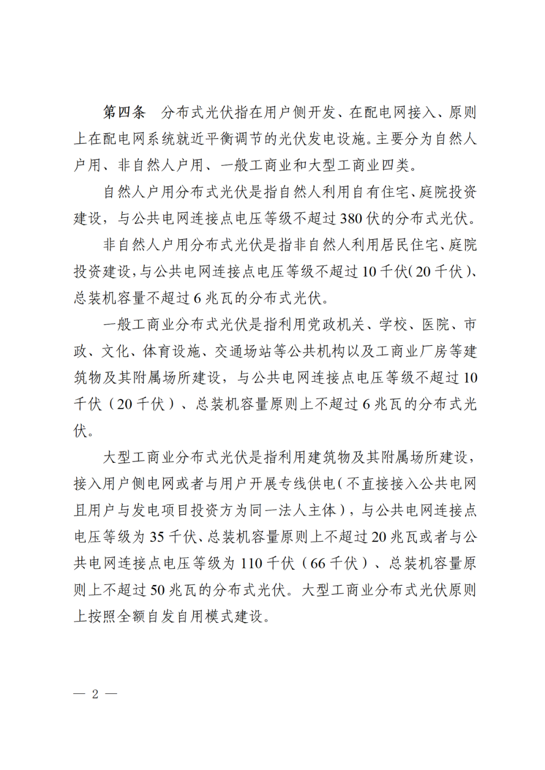 大型工商业分布式光伏原则上选择全部自发自用模式。