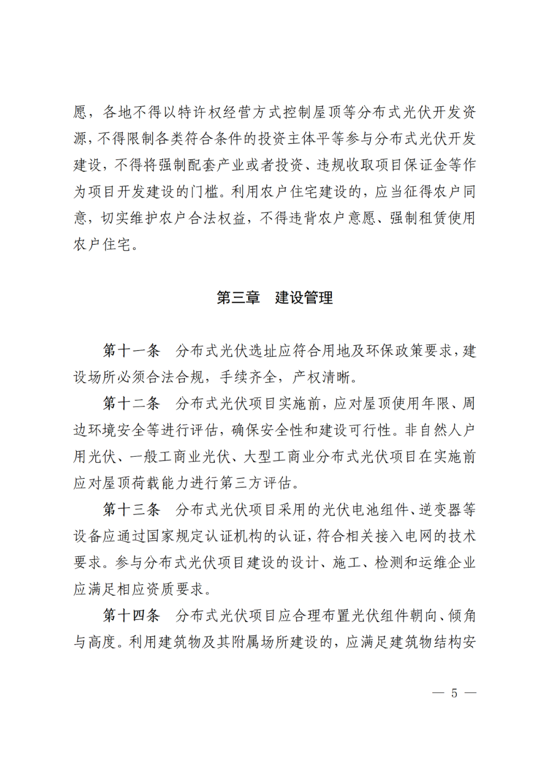 文件明确,分布式光伏项目实施前,应对屋顶使用年限、周边环境安全等进行评估,确保安全性和建设可行性。非自然人户用光伏、一般工商业光伏、大型工商业分布式光伏项目在实施前应对屋顶荷载能力进行第三方评估。